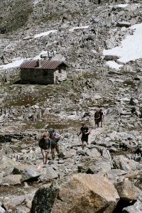 Sunday was entirely dedicated to the Memorial Hike, which led us along the historic escape route of 1947. As every year, around 200 hikers gathered early in the morning in front of the Krimmler Tauernhaus, where they were traditionally welcomed by the hut warden Friedl Geisler.